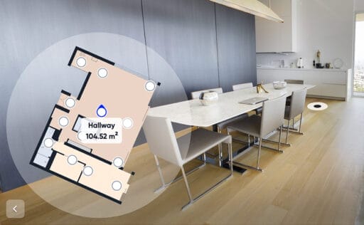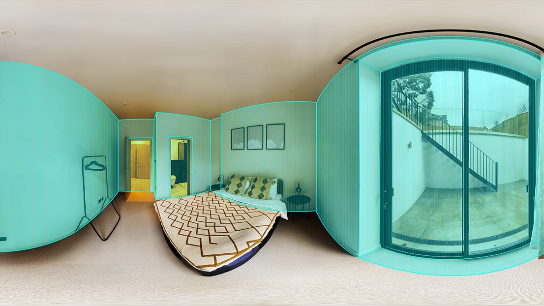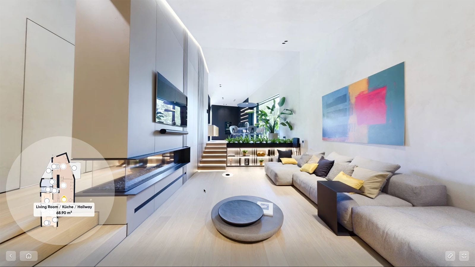 A floor plan is automatically integrated into your virtual tour, in the form of a mini-map, for easy navigation between rooms and floors. This rotates as you look around the space, allowing you to get a better spatial understanding of the property.