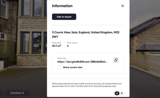 Giraffe360 allows you to create virtual tours with no manual stitching or editing required. Just scan every room in the property and your virtual tour will be created and returned to you ready for use.